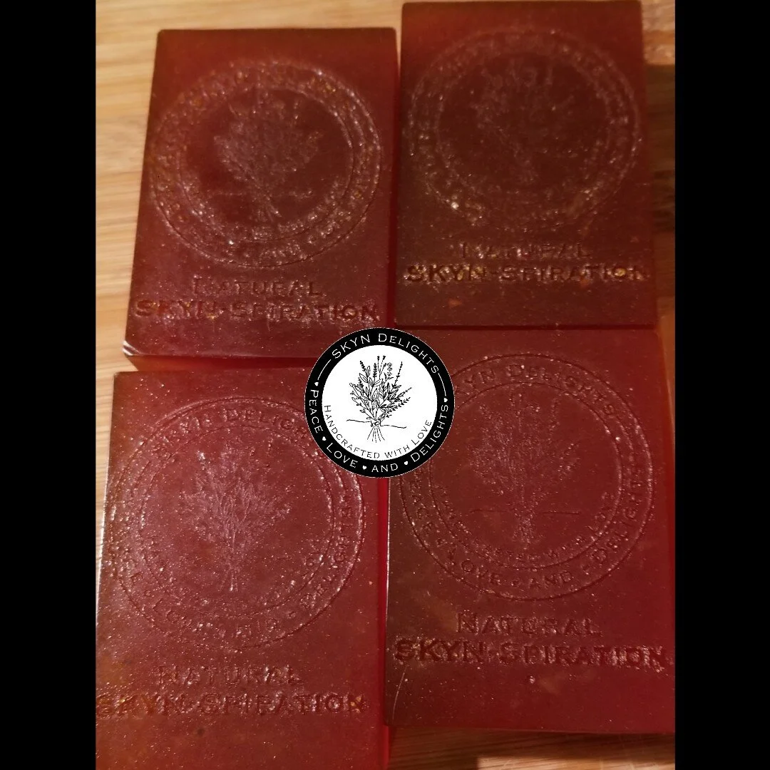 Glycerin Turmeric Gentle Exfolting Soap scented with Eucalyptus that will help with sinus relief as well as Brighten, Fade Even Skin Tone, Acne Relief, Moisturize and Gently Exfoliate due to the skin nourshing ingredients of Raw Certified Clean Cane Sugar, Turmeric, Aloe, Coconut Oil, Olive Oil and Lemon and Lavender Essential Oil blend. Awaken your Senses and your Skin to A Healthy way of Cleansing.